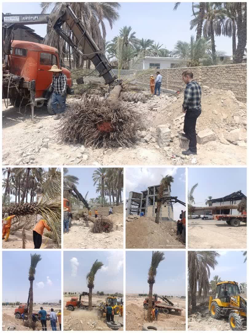 جابجایی دو نفر نخل از پلاک تملک شده در خیابان اصلی شهر