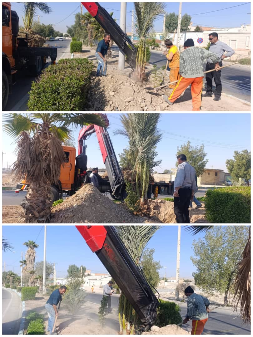 ادامه اجرای پروژه کاشت درختان نخل در بلوار قطب الدین توسط کارگران خدوم شهرداری قطب آباد امروز 16 آذرماه 1404 شمسی ۱۶ آذر ۰۴